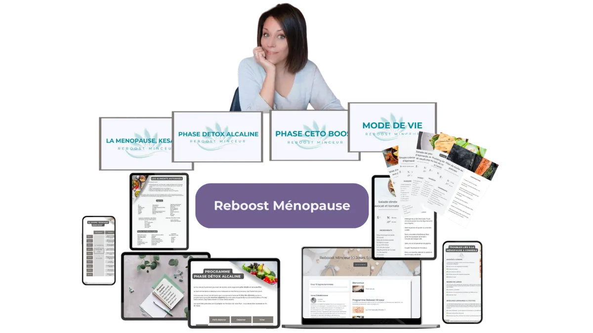 Elle a donc créé Reboost Ménopause: une méthode 100 % naturelle, sans régimes extrêmes, sans compléments inutiles, basée sur la nutrition hormonale.